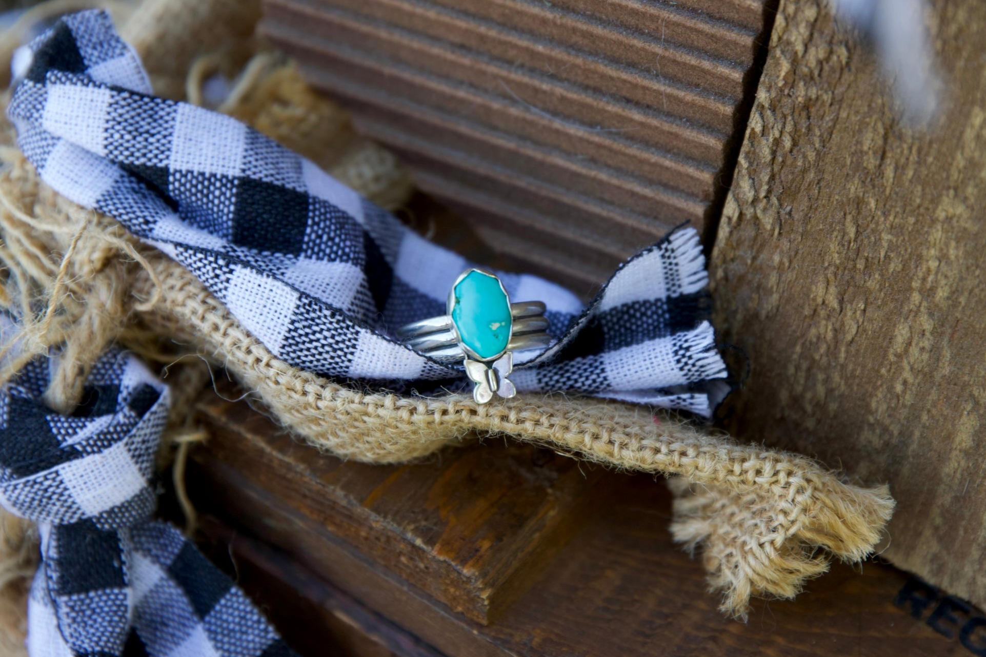 Sonoran stone on a triple sterling silver ring band with a silver butterfly accent
