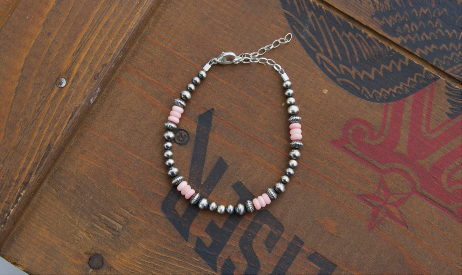 Pink conch and sterling silver pearl bracelet