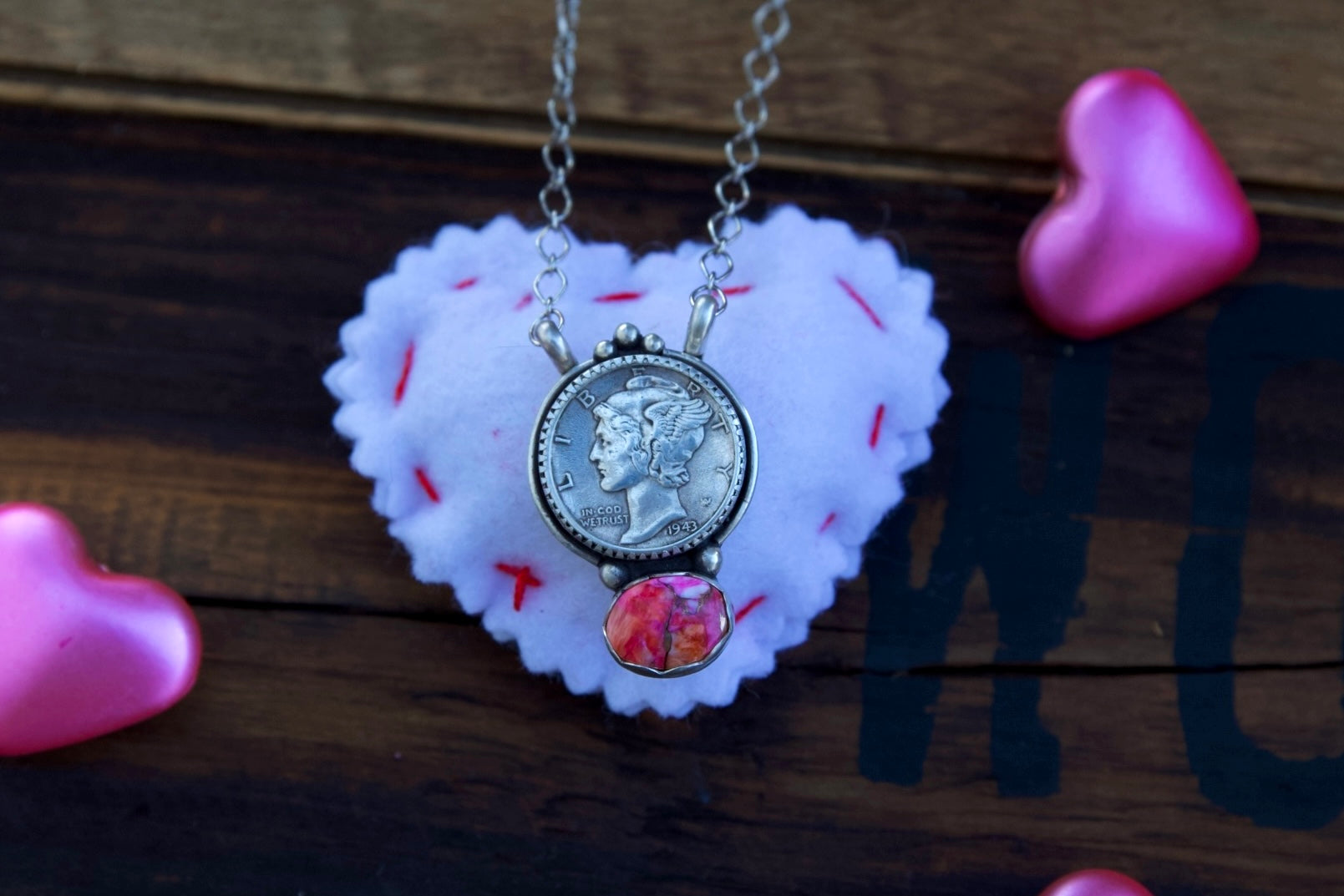 Liberty dime & Pink Spiny necklace