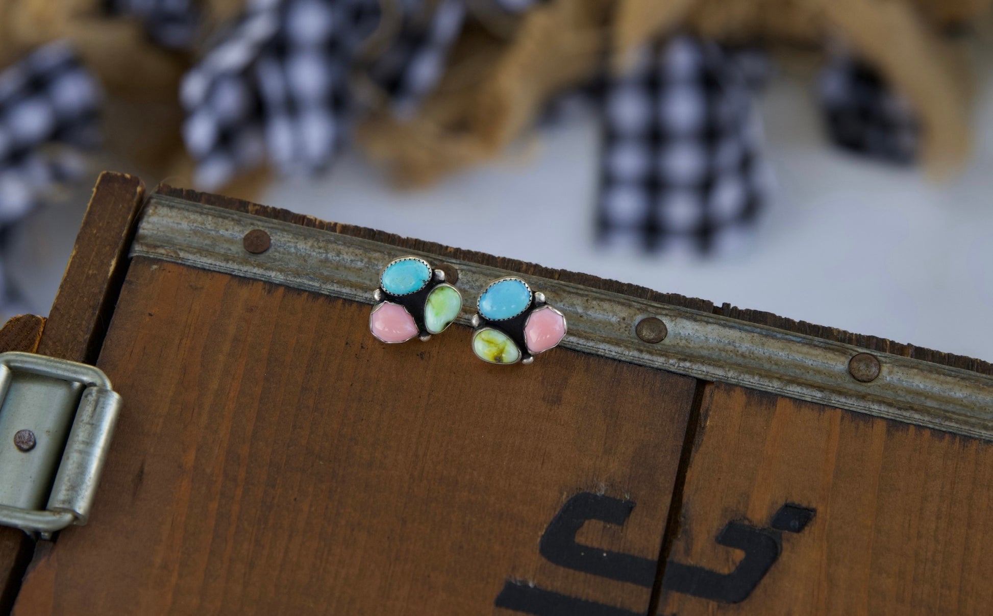 Golden Hills, Pink Conch, & Palomino cluster studs