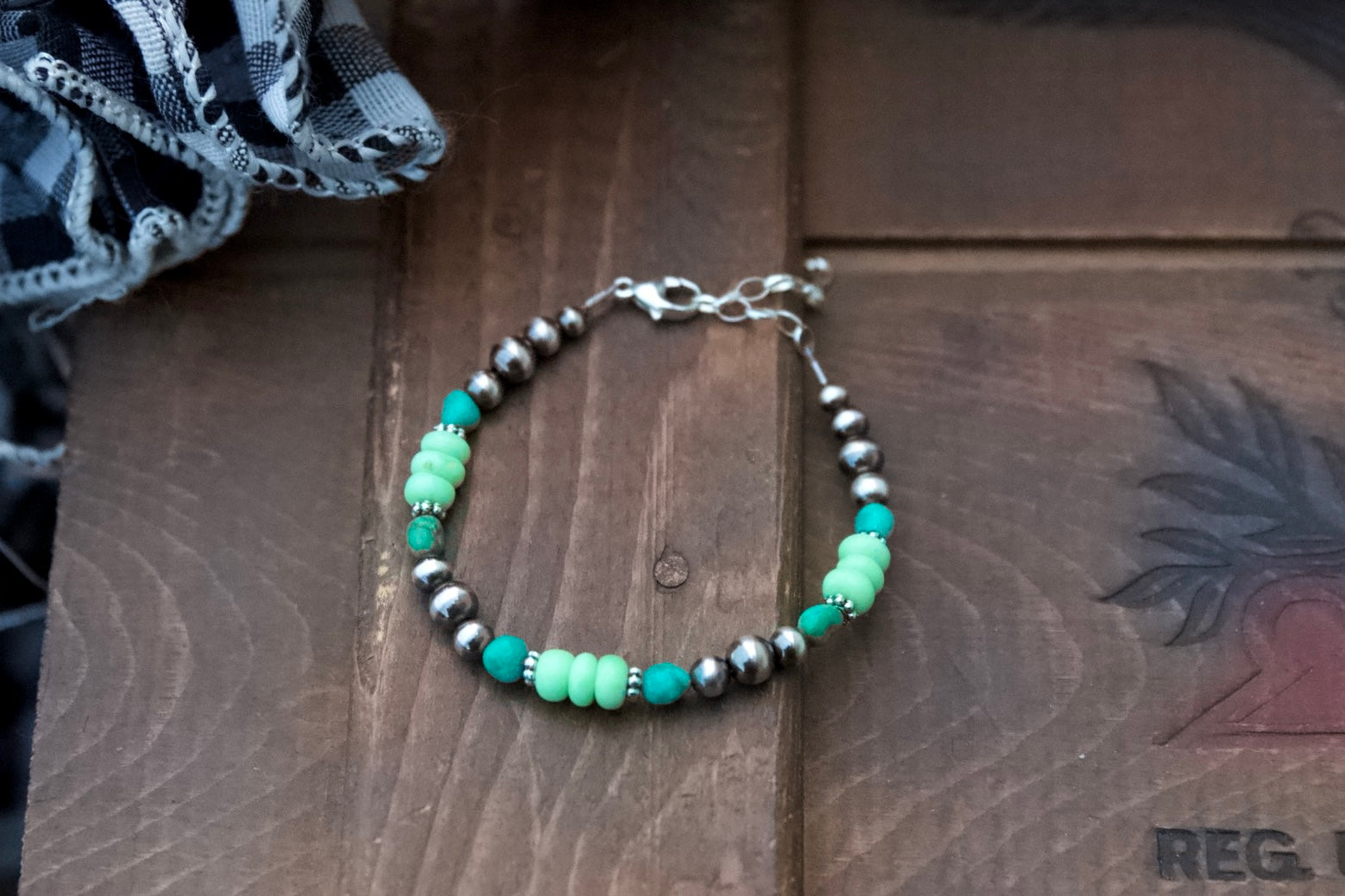 Sterling silver pearl bracelet with Emerald Valley & Green Opal beads
