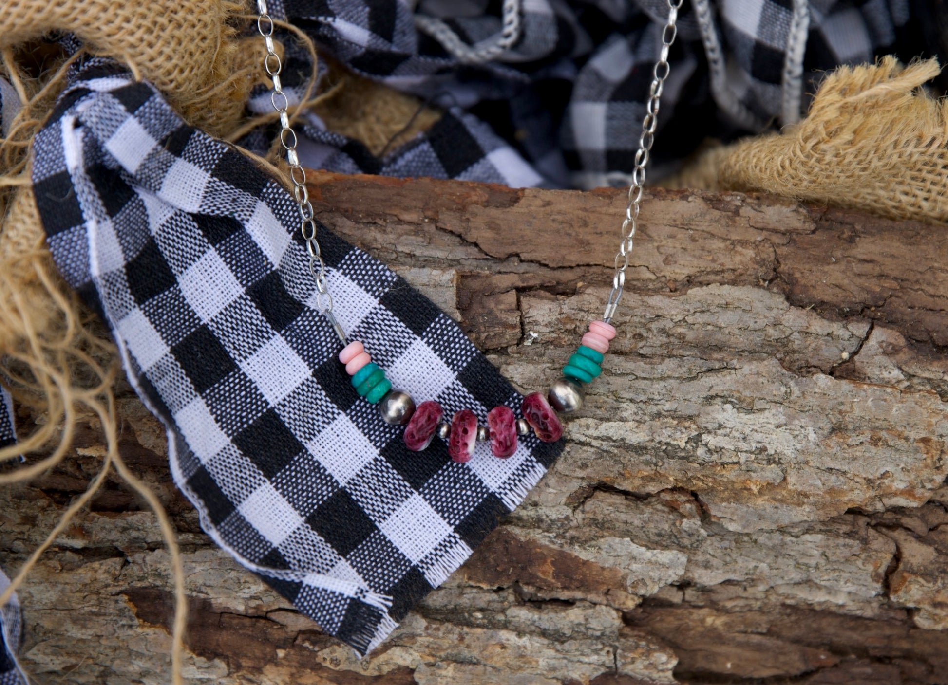 Mixed stone and sterling silver pearl necklace